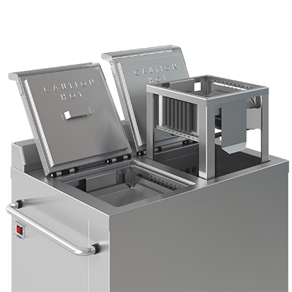 The Colossus Heated Plate Dispenser is designed for heating china plates to 180°F and wax bases at 300°F in less than two hours. It’s ideal for heating plates and bases to maintain hot food temperatures during delivery in conjunction with the Dinex Induction Heating System.